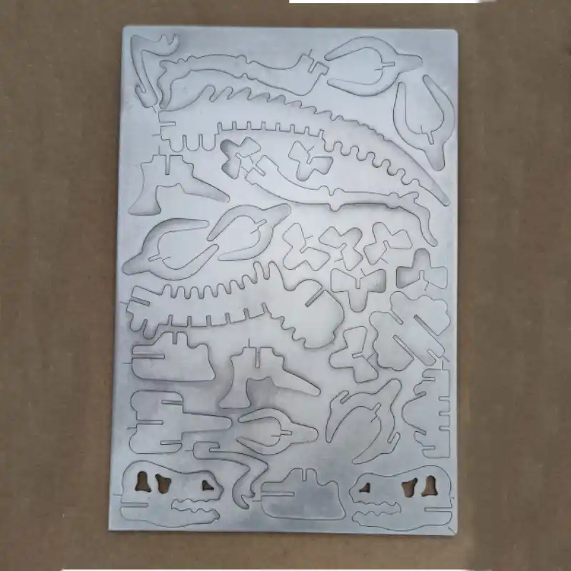Fabriqué en inox 304L, reconnu pour sa résistance à la corrosion, sa durabilité et son aspect haut de gamme, ce puzzle est découpé avec une grande précision dans une tôle de 2 mm d’épaisseur. Ce choix de matériau garantit une excellente rigidité une fois assemblé, tout en conservant une finesse visuelle qui met en valeur chaque détail du squelette : crâne, colonne vertébrale, côtes, pattes et queue articulée.
